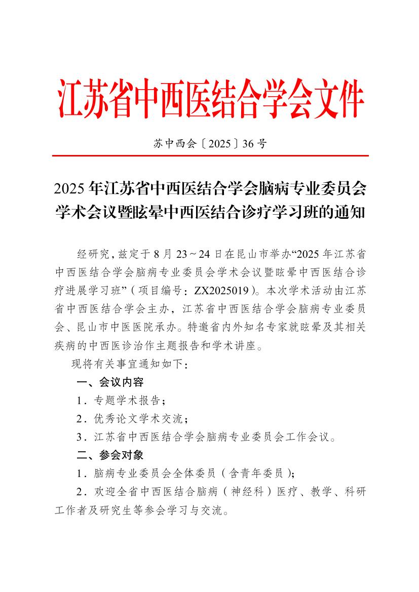 2025年江苏省中西医结合学会脑病专业委员会学术会议暨眩晕中西医结合诊疗进展学习班的通知 (2).pdf