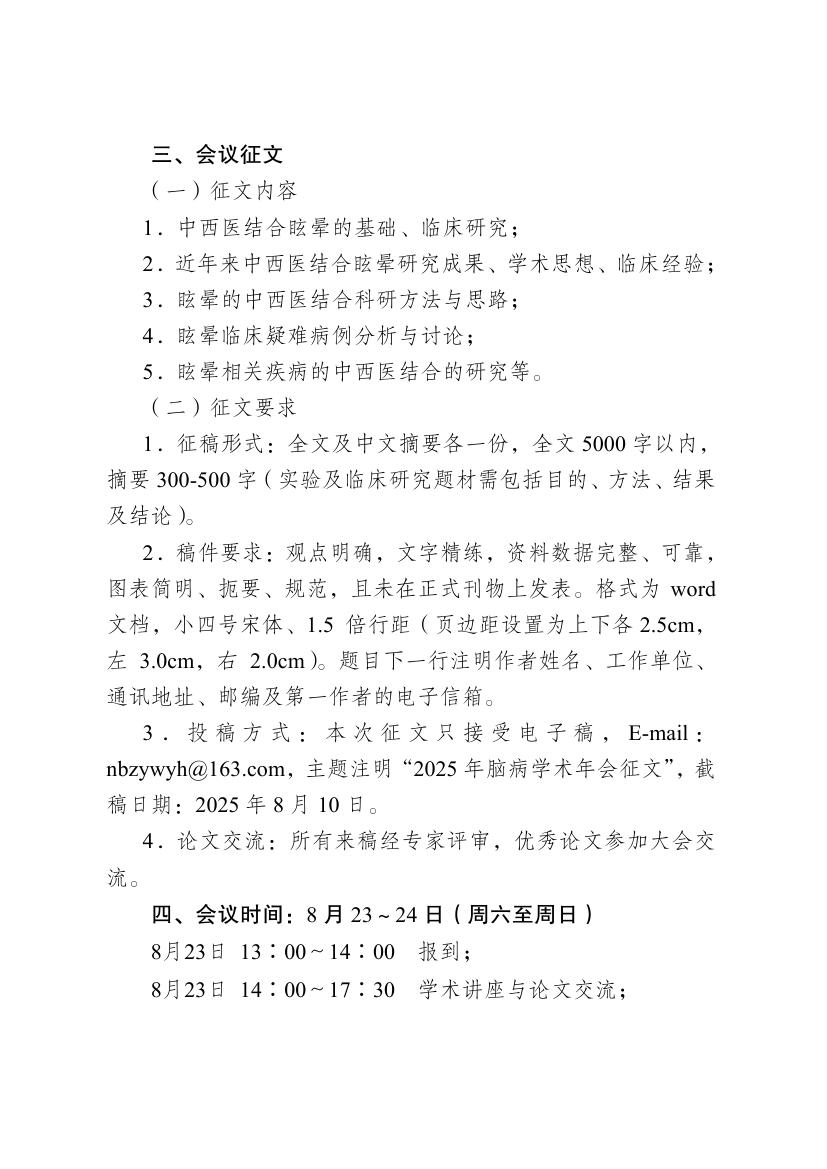 2025年江苏省中西医结合学会脑病专业委员会学术会议暨眩晕中西医结合诊疗进展学习班的通知