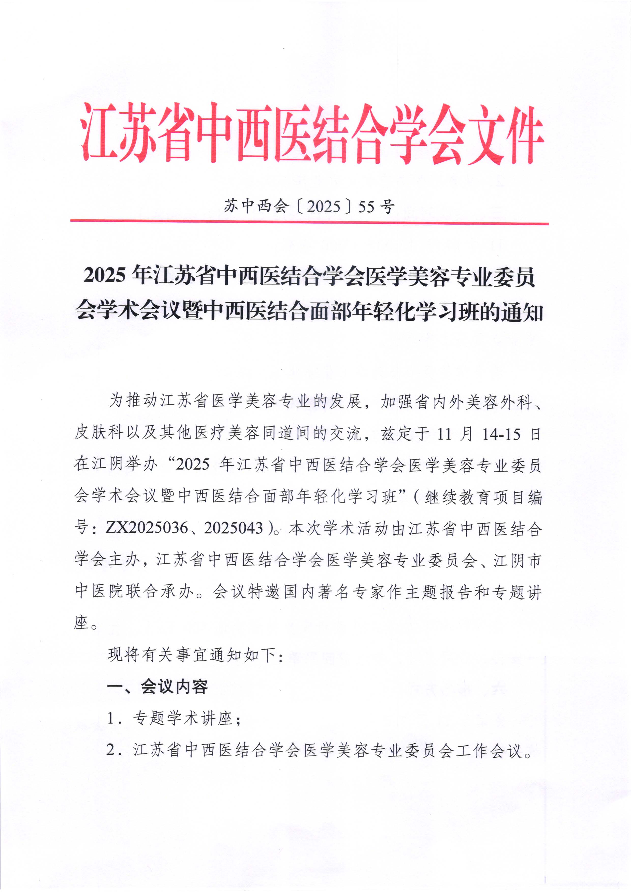 2025年江苏省中西医结合学会医学美容专业委员会学术会议暨中西医结合面部年轻化学习班通知 (定稿).pdf