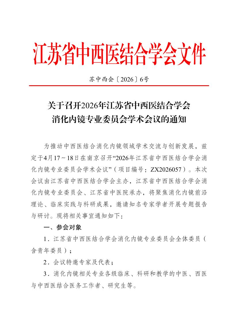 关于召开2026年江苏省中西医结合学会消化内镜专业委员会学术会议的通知.pdf