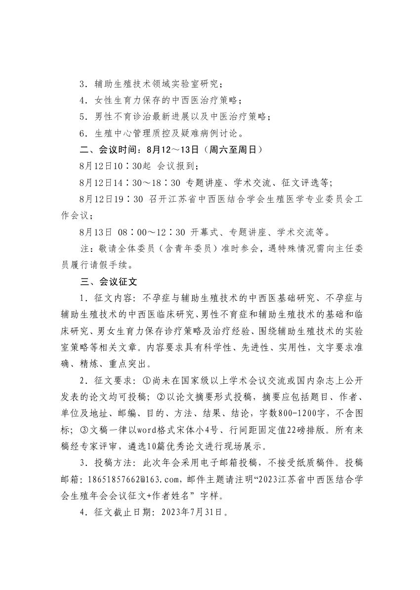 2023年江苏省中西医结合学会生殖医学专业委员会学术年会暨辅助生殖技术中西医结合助孕策略学习班的通知