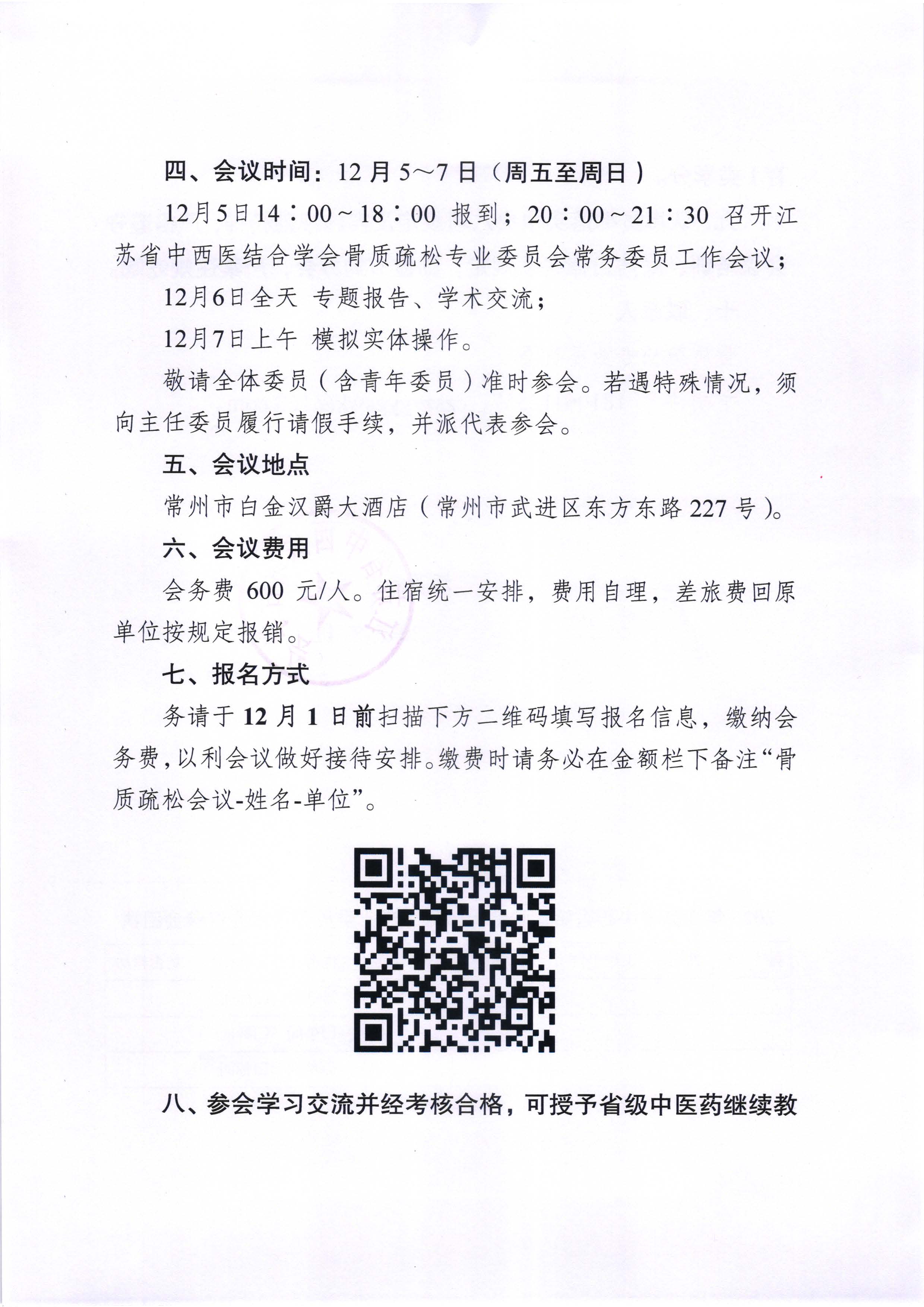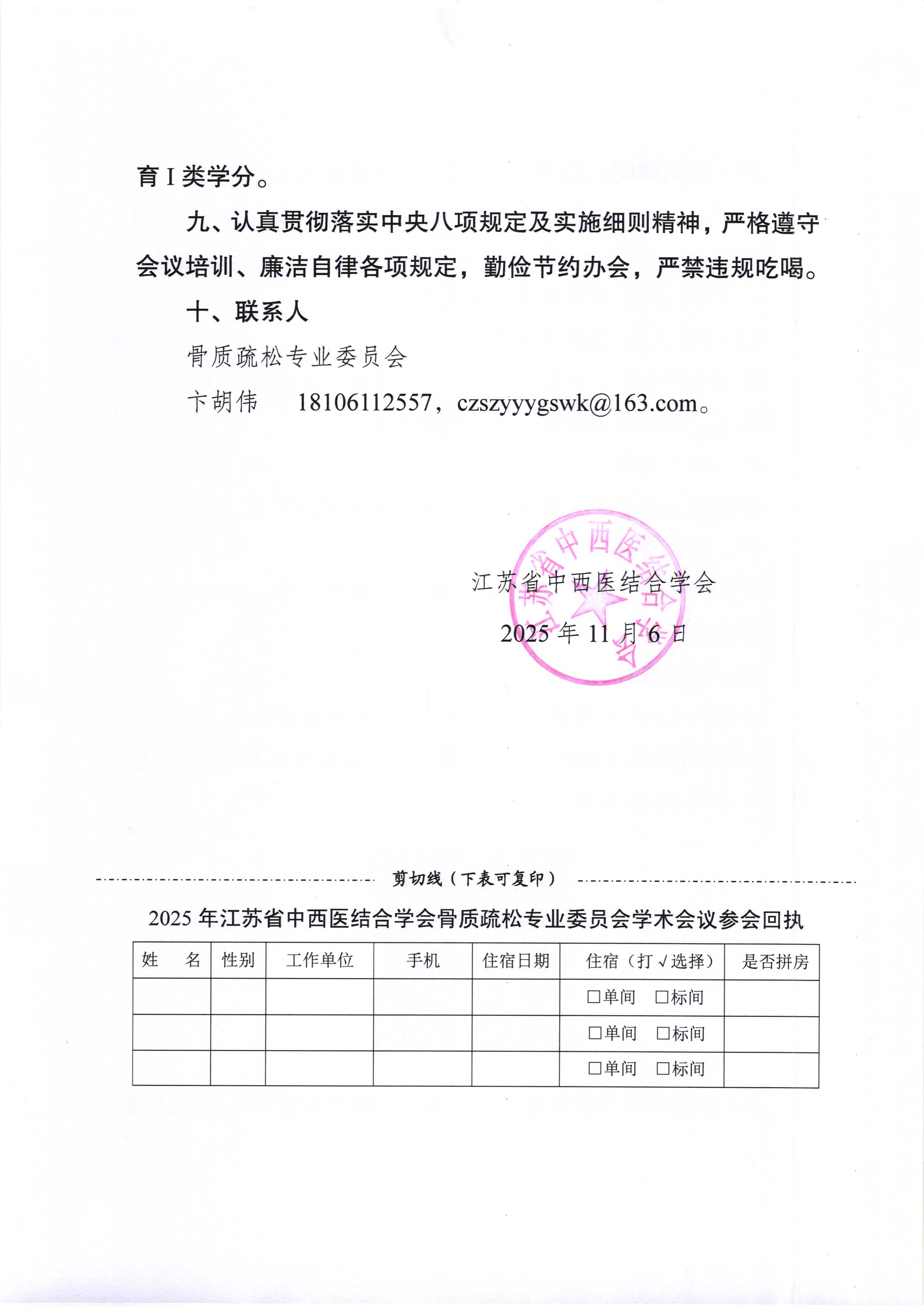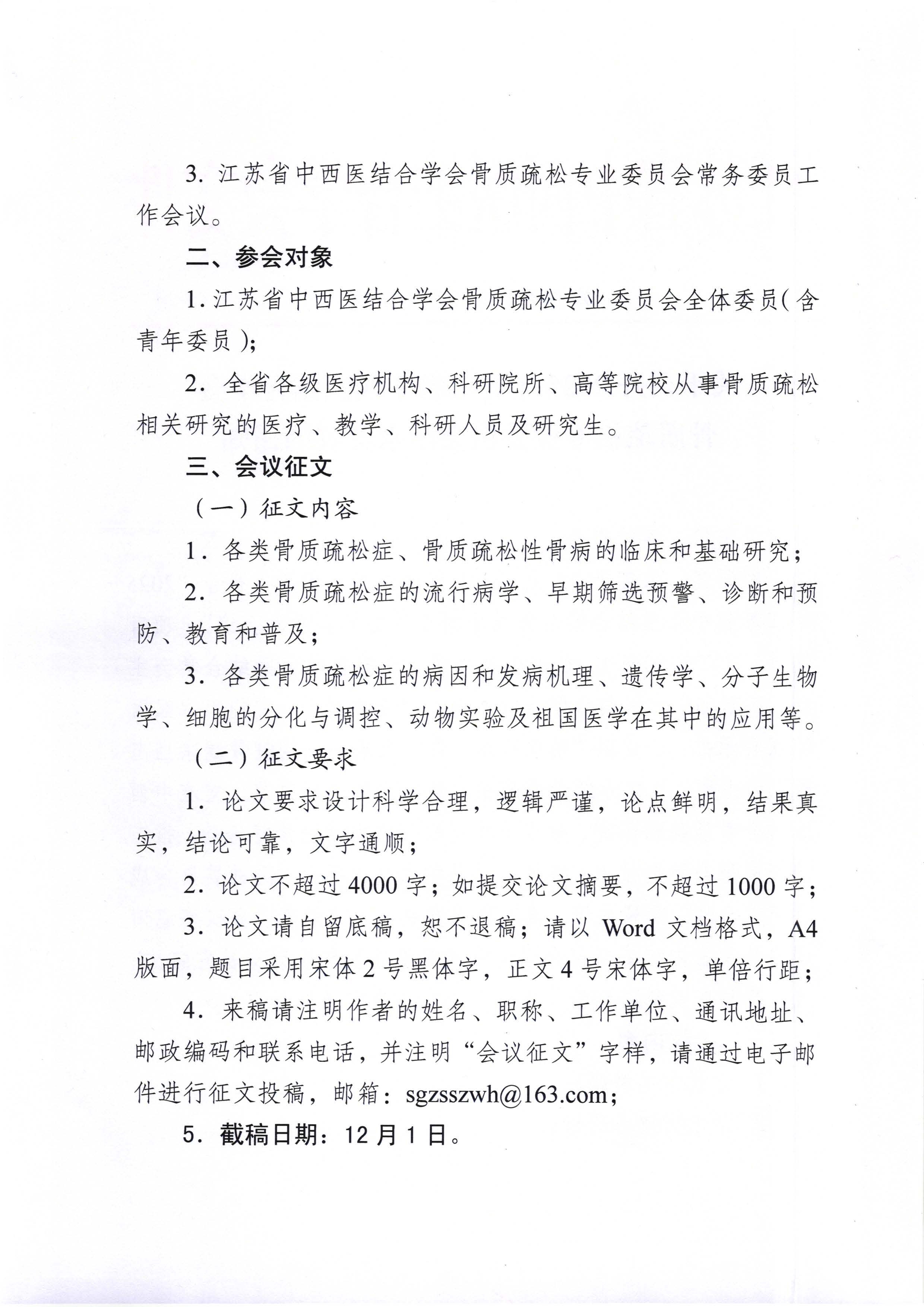 关于召开2025年江苏省中西医结合学会骨质疏松专业委员会学术会议的通知