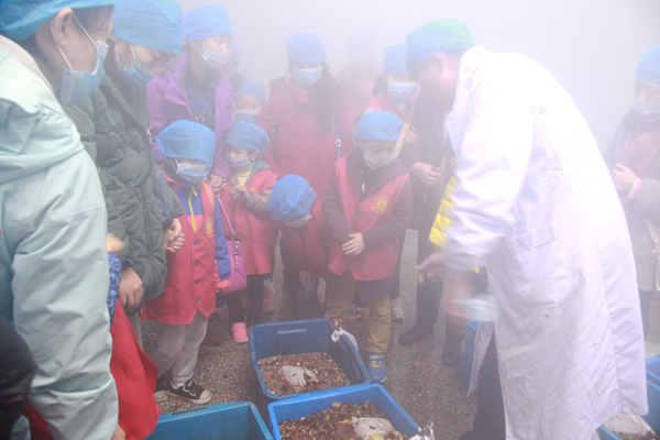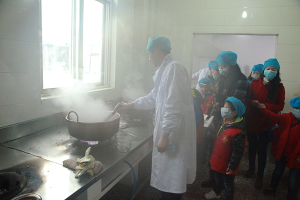 11月19日上午,镇江市中医院迎来MY0511“家有学子”训练营的小记者们,探秘医院膏方制作全流程。活动中,镇江市中医院药剂科谢新芳科长带领10余位小记者分别参观了医院的门诊中药房、膏方制作间。 活动中,在门诊中药房,王震药师向小记者们介绍了中药房内的珍稀中药材。如此零距离的接触中草药,对于这些小记者们来说还是头一次。在王药师的引导下,带着满满的好奇心,一双双眼睛如饥似渴得关注着每一个角落,生怕落下点什么。中草药的神奇药理特性,让这群小记者们大开眼界,受益匪浅。 寻着浓浓的中药味,小记者们来到膏方制作间门前,在那里化身为“讲解员”的市中医院中药库的沈永权主任,用通俗的语言向小记者们上了一堂生动的“中医药普及课”。 随后,在医院工作人员的协助下,每一位“探秘者”戴上口罩、帽子全副武装,见证奇迹的发生。步入制作间,瞬间双眼就被满是水蒸气的空气模糊了。定定神,几秒钟后,才看清前面的路。整个制作间大约六七百平方米。一顺边整齐地摆放着一个个集装箱,里面盛放着浸泡在水中的几十味中药。“这是医生开过方后,中药材进入这里的第一道工序——清洗浸泡,清洗浸泡时间需要12小时” 沈主任告诉小记者们。之后,就到了煎煮的工序。当8口蒸气锅同时蒸煮药材时,这里便是水蒸气最集中的地方。置身其中,深感冬日里难得的温暖,此时,屋内已是20多℃。沈主任告诉小记者们,“煎煮环节现场有专门的药师监督,监督煎煮时间、加水量、出汁量、沉淀的时间、浓缩程度等。这些都是保证膏方质量不可缺少的环节。药材煎煮1小时后,会将合并的滤液沉淀12小时后倒入蒸汽锅浓缩,再加入用黄酒浸泡的阿胶、鹿角胶、龟板胶等辅料,以去腥……” 在收膏间。6个煤气灶头上摆放着6口大铜锅,大铜锅下灶头上火正旺,沈主任拿起一个五六十厘米长、六七厘米宽的竹制膏板,在锅里顺时针快速搅拌,时而抬起查看膏方的粘稠度。与此同时,再加入糖、蜂蜜等辅料。在严格遵循“一人一方”的原则下,药师们根据膏方需求者及开膏专家的药方,在全程监控下,两名药师共同在场,添加虫草等贵重药材。最终,熬制好的膏方被倒进透明的膏方盒中。 最后,在凉膏区。沈主任在摆放整齐的膏方货架前说,“7000多年中医药发展史中,神农尝遍百草,李时珍踏遍千山,几千年以前,古人为了治病养生,付出了太多辛苦,也积累了很多精华,所以中医是我们珍贵的国粹,需要大家传承!”沈主任的一席话让在场的每一位思索良久。希望此次的探秘,能在小记者心中增添一份传承传统中医药文化的责任。