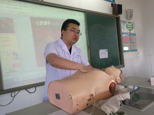 此次培训内容包括心肺复苏的概念、脑的有关知识,单人心肺复苏的徒手操作。重点对现场环境的评估、猝死患者的判断、如何正确心脏按压以及口对口人工呼吸等心肺复苏流程,通过PPT课件和视频展示,使内容讲解通俗易懂。活动中,医务人员向师生们现场演示心肺复苏急救措施,大家纷纷表示受益匪浅。