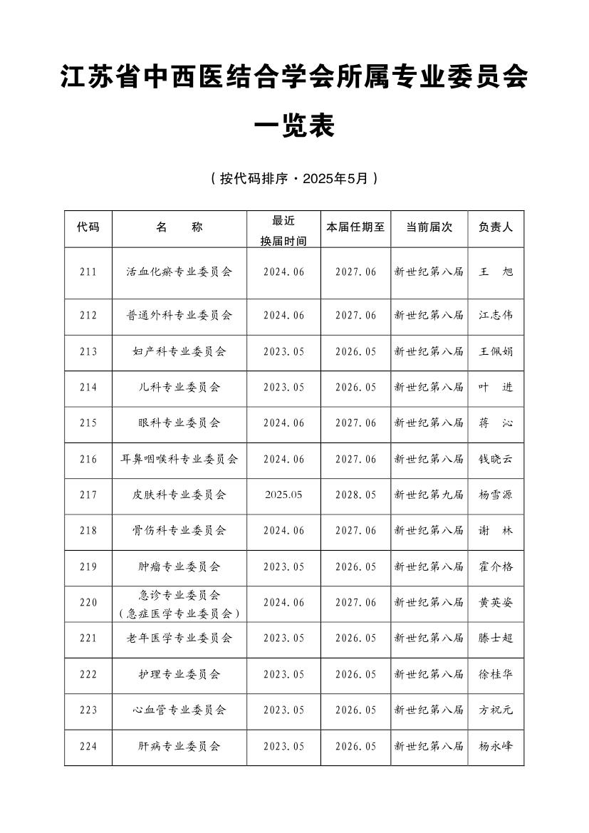 首页 >> 学会之窗 >> 江苏省中西医结合学会 >> 专业委员会负责人