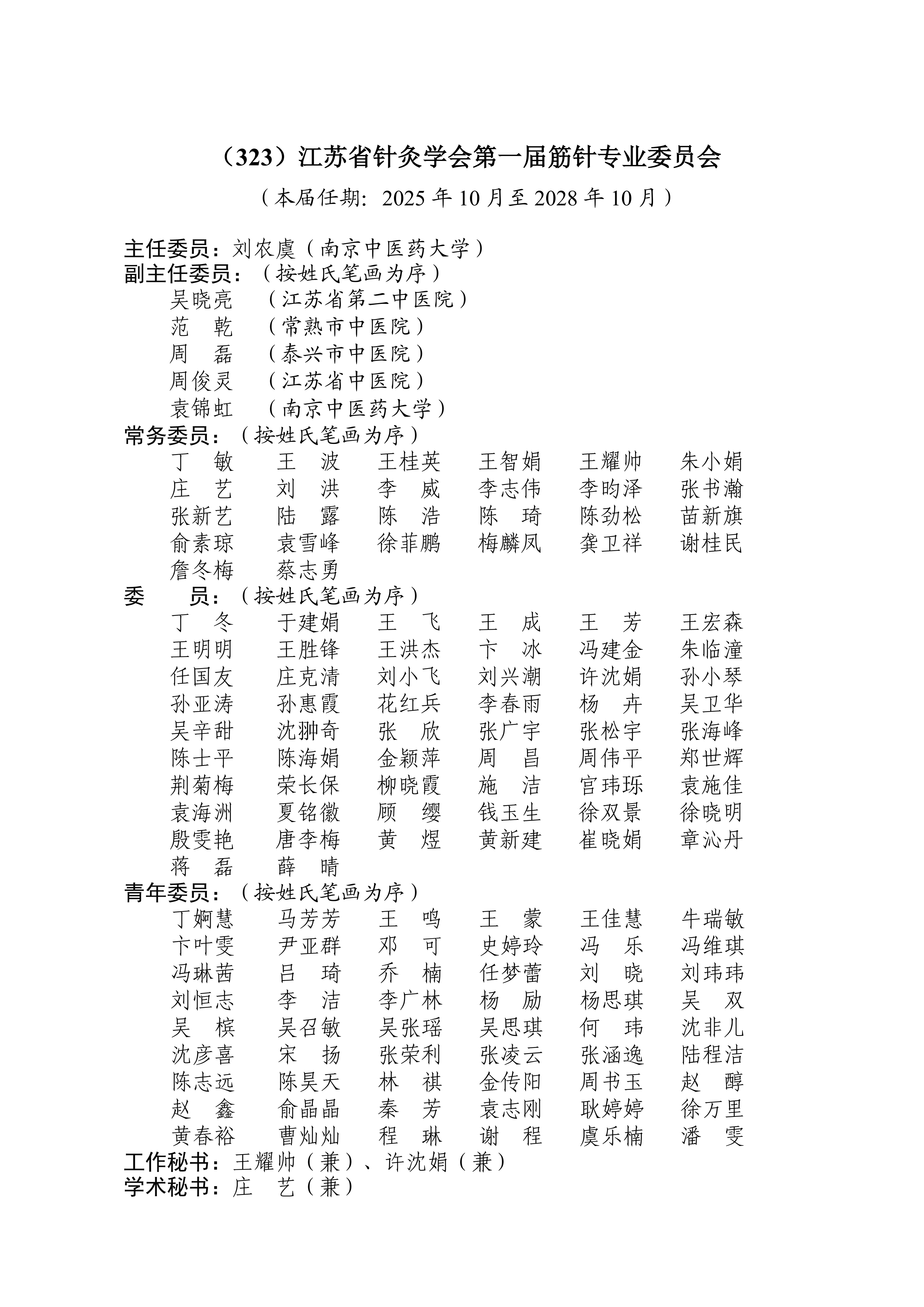 首页 >> 学会之窗 >> 江苏省针灸学会 >> 专业委员会名称与成员 >> 323筋针专业委员会